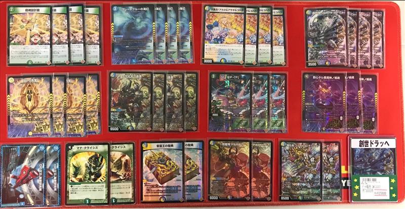 超魂設計図(ビー・トゥゲザー) 4枚 グレートブルーの海幻 4枚 大集合!アカネ&アサギ&コハク 4枚 創世竜 Drache der'Zen 4枚 ウルの天宝 4枚 ~世紀末の善悪~ 4枚 PP-「P」 3枚 邪心タル悪魔神ノ禍魂 3枚 Dの天災 海底研究所 2枚 マナ・クライシス 2枚 聖霊王の聖典 2枚 ~邪眼帝PARTⅡ~ 2枚 竜社長 ゴルファウンデーション 2枚