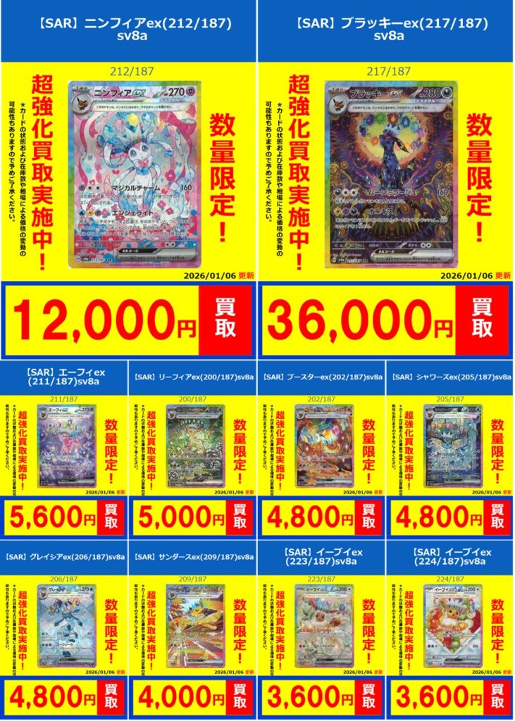 | [SV8a]ニンフィアex【SAR】212/187 | 12000 |